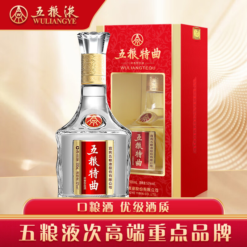 五粮液股份 五粮特曲 浓香型白酒 52度500ml单瓶装 宴请送礼自饮价格:199.00元!