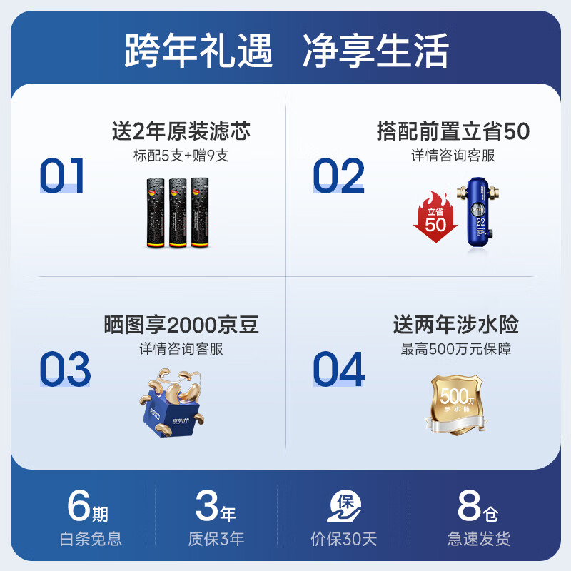 德克西(DEKEXI) 净水器家用直饮厨房自来水前置过滤器超滤净水机不锈钢净化器水龙头价格:657.00元!