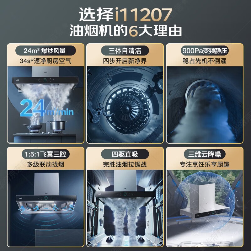 华帝(VATTI)油烟机 欧式抽油烟机燃气灶套装家用三腔变频.创世S7自动清洗24立方爆炒风量爆吸i11207厨房三件套 【欧式单烟机TOP1】24爆炒风量变频自清洁价格:2699.00元!
