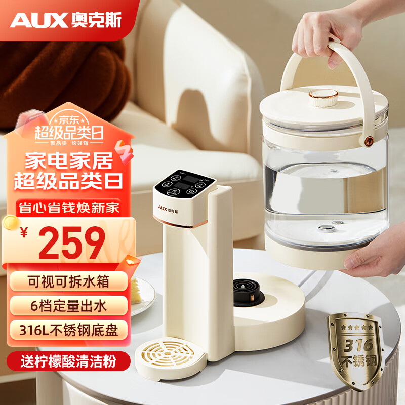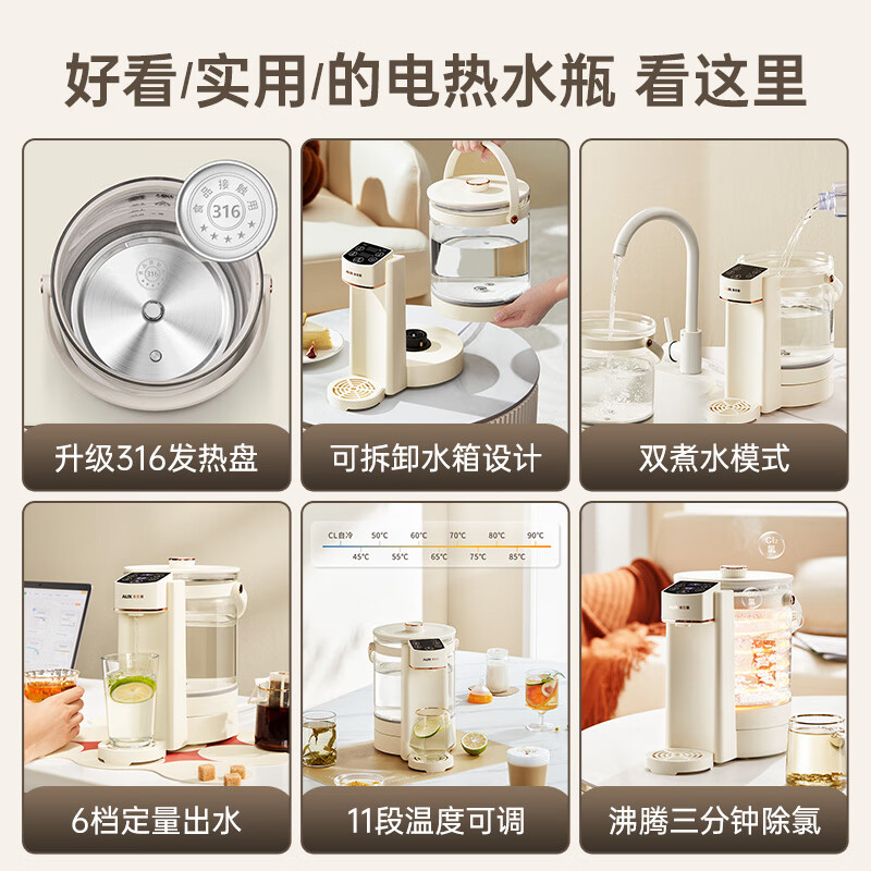 奥克斯(AUX)电热水瓶 电热水壶烧水壶 家大容量316L不锈钢发热盘 多段保温恒温电水壶 【多段定量出水】8576价格:259.00元!