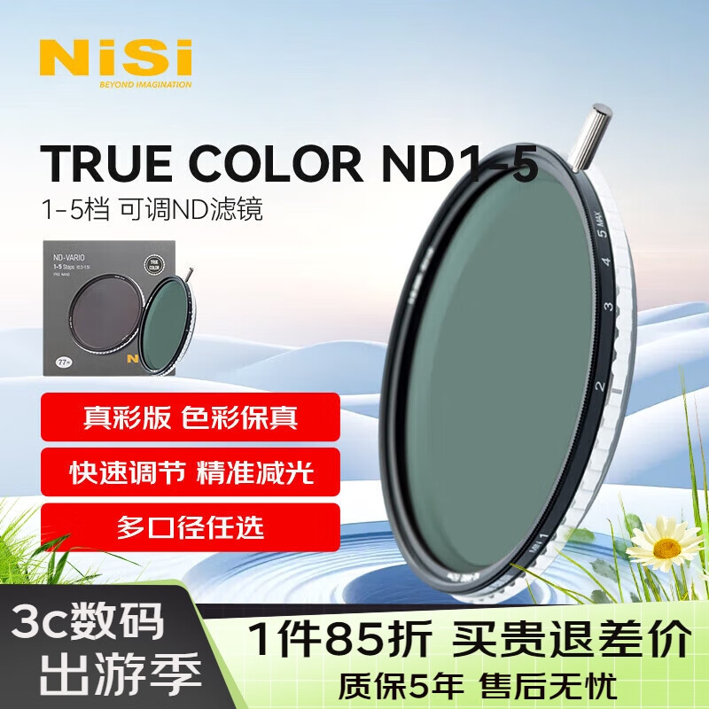 耐司(NiSi)可调nd滤镜 True Color ND1-5档82mm可变nd减光镜 真彩ND镜 单反微单相机人像风光摄影价格:798.00元!