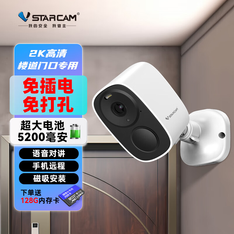 威视达康(VSTARCAM)家门口摄像头免插电wifi无线监控电池版家用室外充电式监控器不插电源免打孔磁吸楼道入户门价格:319.00元!