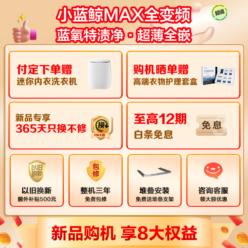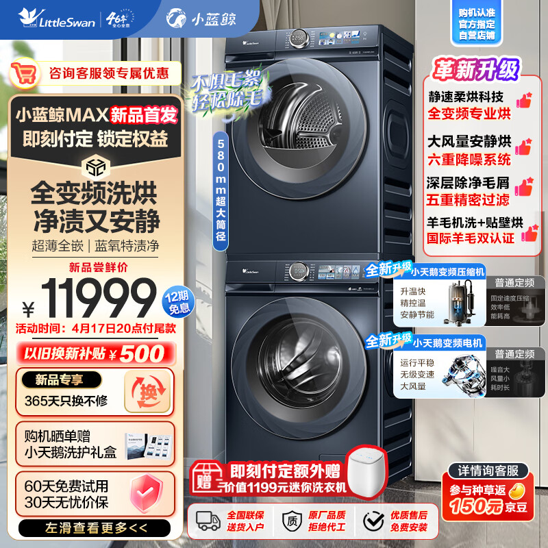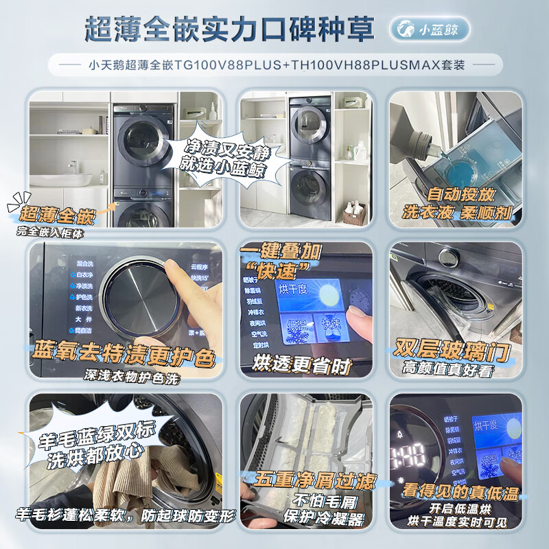 小天鹅(LittleSwan)洗烘套装 10KG滚筒洗衣机+热泵烘干机 超薄全嵌 蓝氧【小蓝鲸MAX全变频】TG100V88PLUS+88PLUSMAX价格:11999.00元!