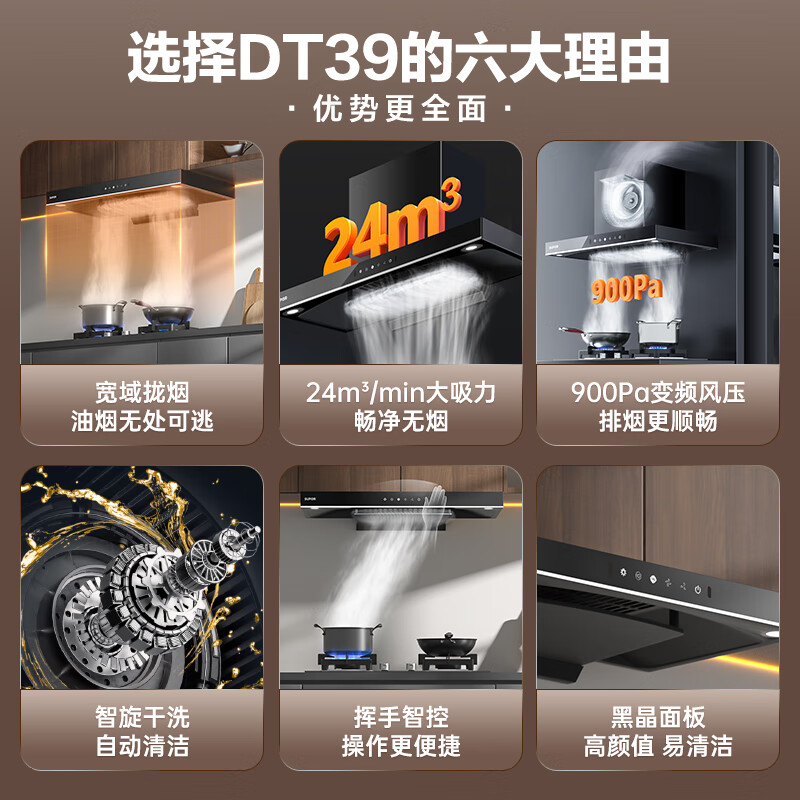 苏泊尔(SUPOR)抽油烟机 家用欧式吸油烟机 24立方大吸力 900Pa变频风压挥手智控自清洁抽烟机DT39价格:1498.00元!