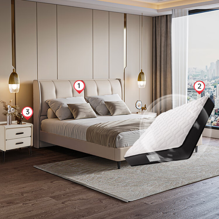舒达(serta)星享头层牛皮床+星锦02床头柜 1.8米致妙主卧套餐价格:11399.00元!