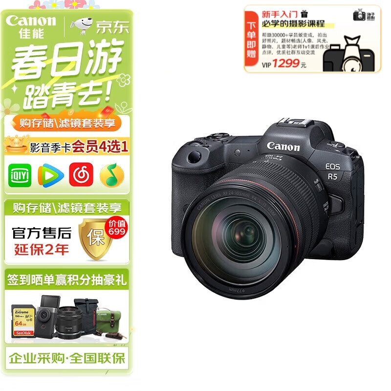佳能(Canon)EOS R5 24-105 USM镜头套机 扫街旅拍套装价格:32999.00元!