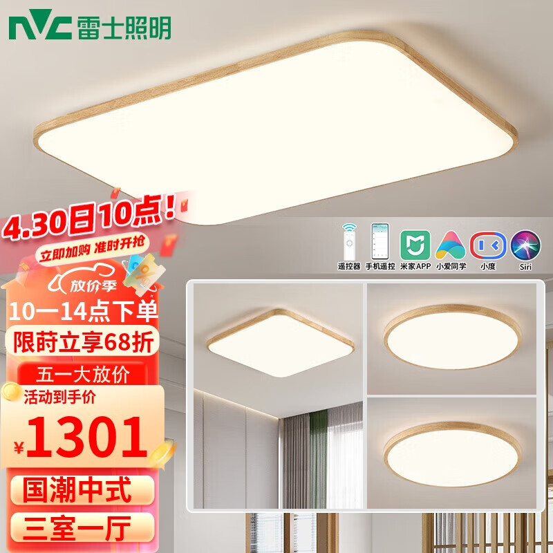 雷士(NVC)LED吸顶灯客厅餐厅卧室新中式原木侘寂超薄三室一厅WHXD118W/F-03价格:1913.00元!