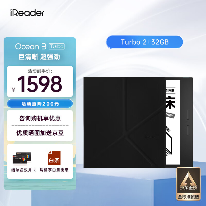 掌阅iReader Ocean3 Turbo 7英寸电子书阅读器 墨水屏电纸书电子纸 2+32GB 儒雅黑支架磁吸套装价格:1598.00元!
