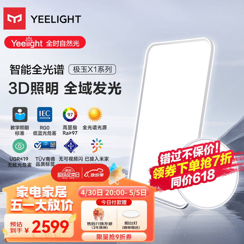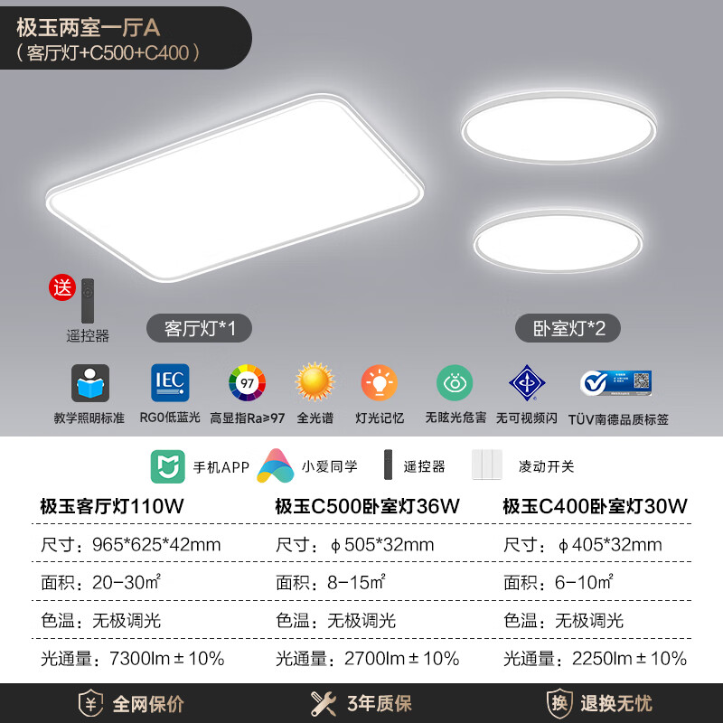 Yeelight易来led全光谱吸顶灯卧室餐厅超薄低蓝光现代简约客厅灯2室1厅A价格:3399.00元!