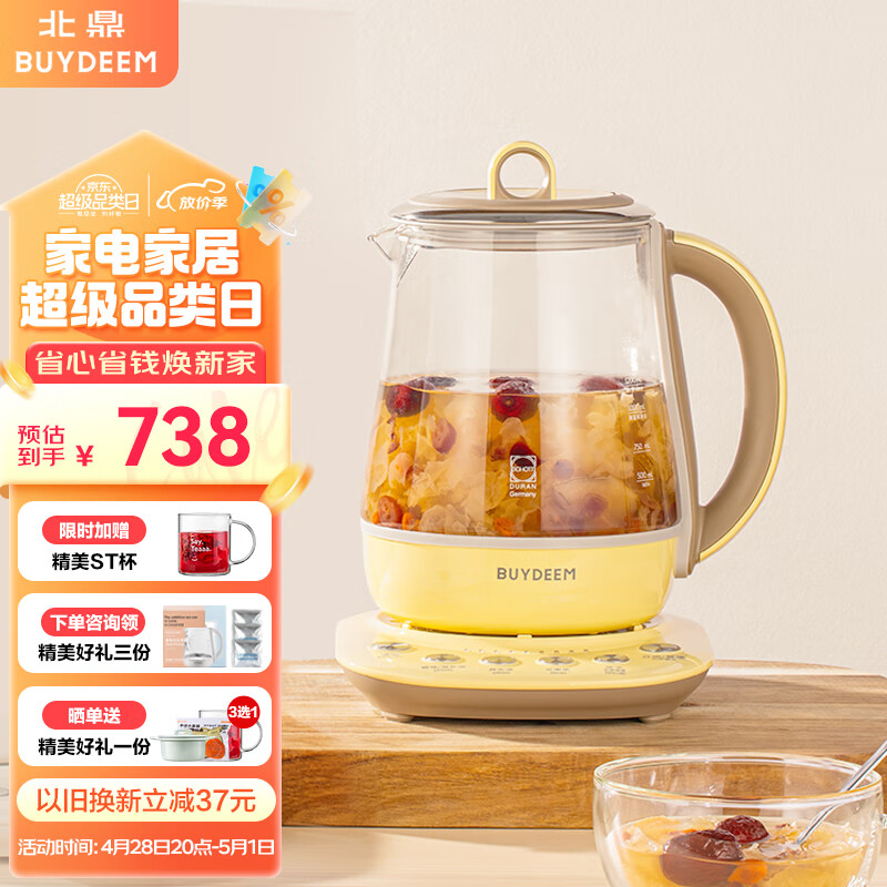 北鼎(Buydeem)养生壶中药壶多功能养生壶迷你玻璃煮茶器 煮茶壶花茶壶黑茶燕窝银耳K118小鹅黄价格:738.00元!