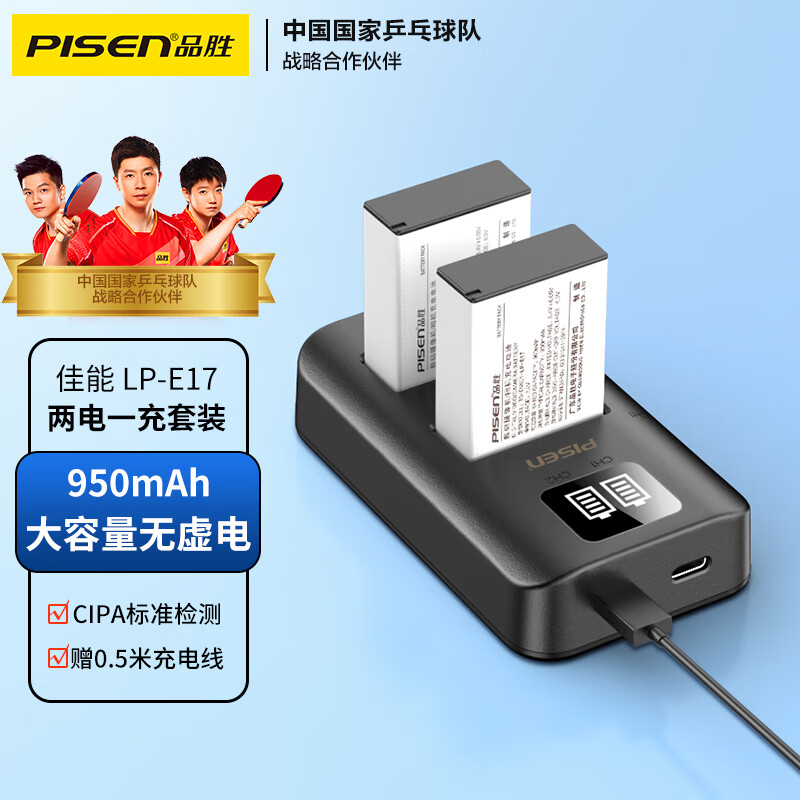 品胜(PISEN)佳能 LP-E17电池R50相机电池充电器套装 适用EOS 850D/800D/750D/77D/760D/M6/M5/R8/R10/200D二代价格:139.00元!