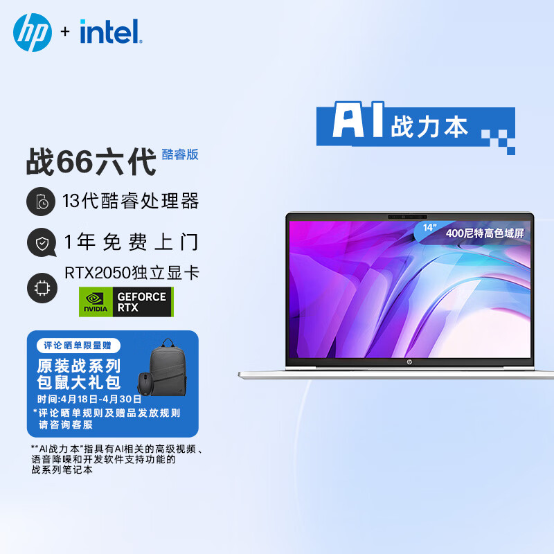 惠普(HP)战66六代酷睿14英寸轻薄笔记本电脑(英特尔13代高性能i7 16G 1T RTX2050高色域低功耗 AI一年上门)价格:5899.00元!
