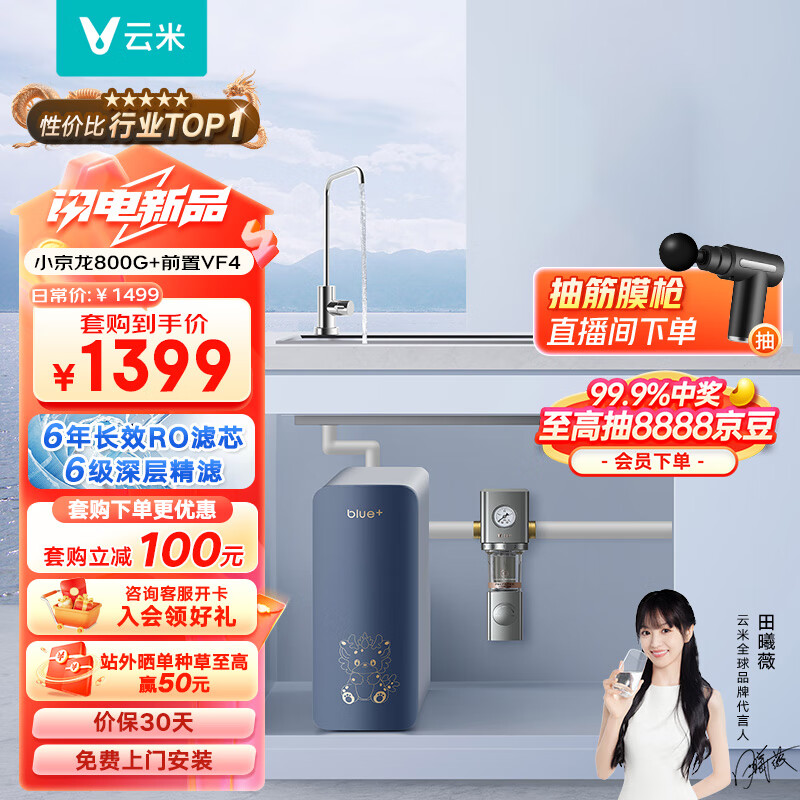 云米(VIOMI)小京龙800G全屋净水套装净水器+前置过滤器VF4-A两件套家用直饮净水器净水机价格:1499.00元!