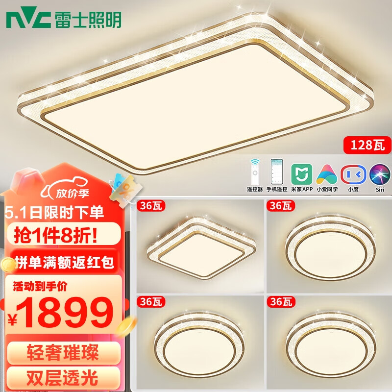 雷士(NVC)吸顶灯客厅大灯米家智能现代轻奢新中式led照明灯具套餐白金晶宏S价格:2373.00元!