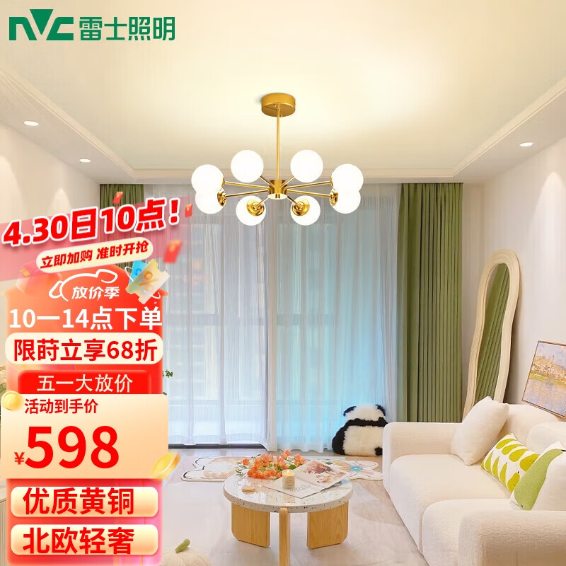 雷士(NVC)吊灯魔豆分子灯黄铜客厅卧室书房餐厅北欧灯具灯饰创意现代轻奢价格:878.00元!