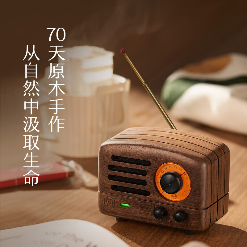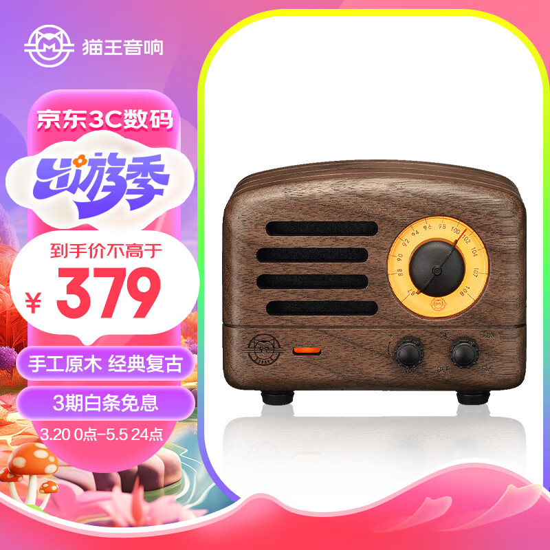 猫王收音机猫王音响 猫王小王子无线便携式蓝牙音箱可爱复古迷你小音响家用原木质收音机情人节礼物 胡桃木价格:359.00元!