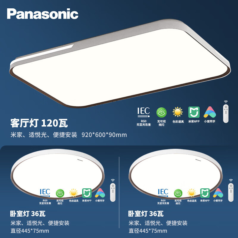 松下(Panasonic)吸顶灯 快装客厅灯套餐米家智能控制护眼吸顶灯二室一厅价格:2199.00元!