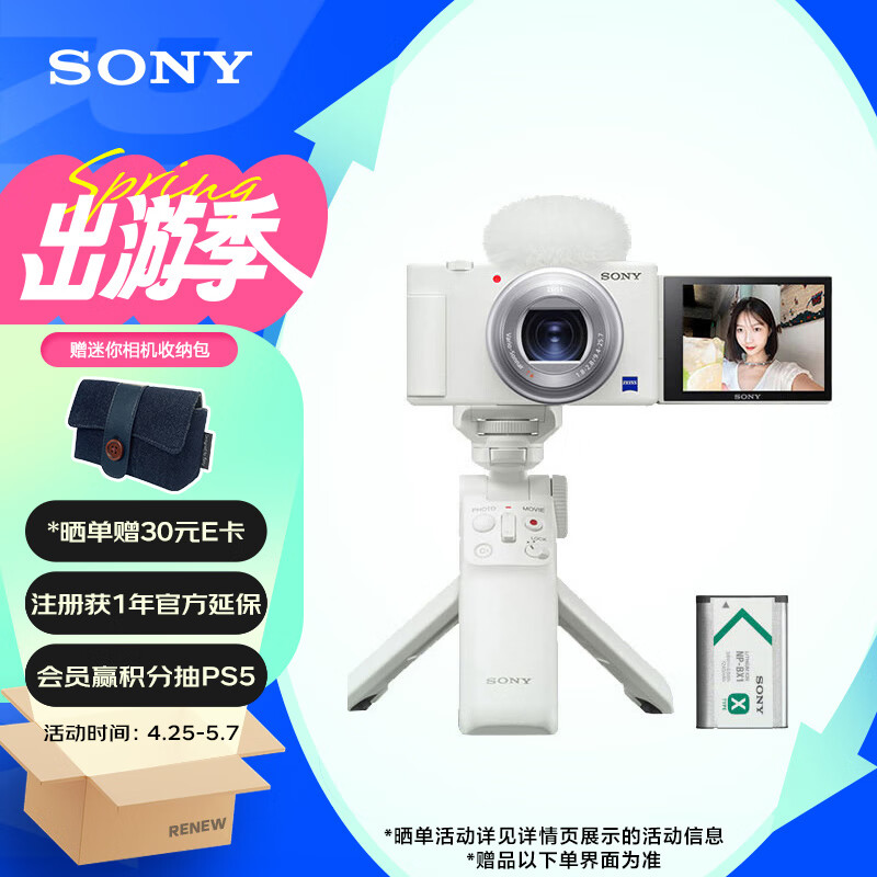 索尼(SONY)ZV-1数码相机 手柄电池套装白色 小巧高颜值/美肤/强悍对焦/大变焦/入门/4K视频/Vlog ZV1价格:4799.00元!