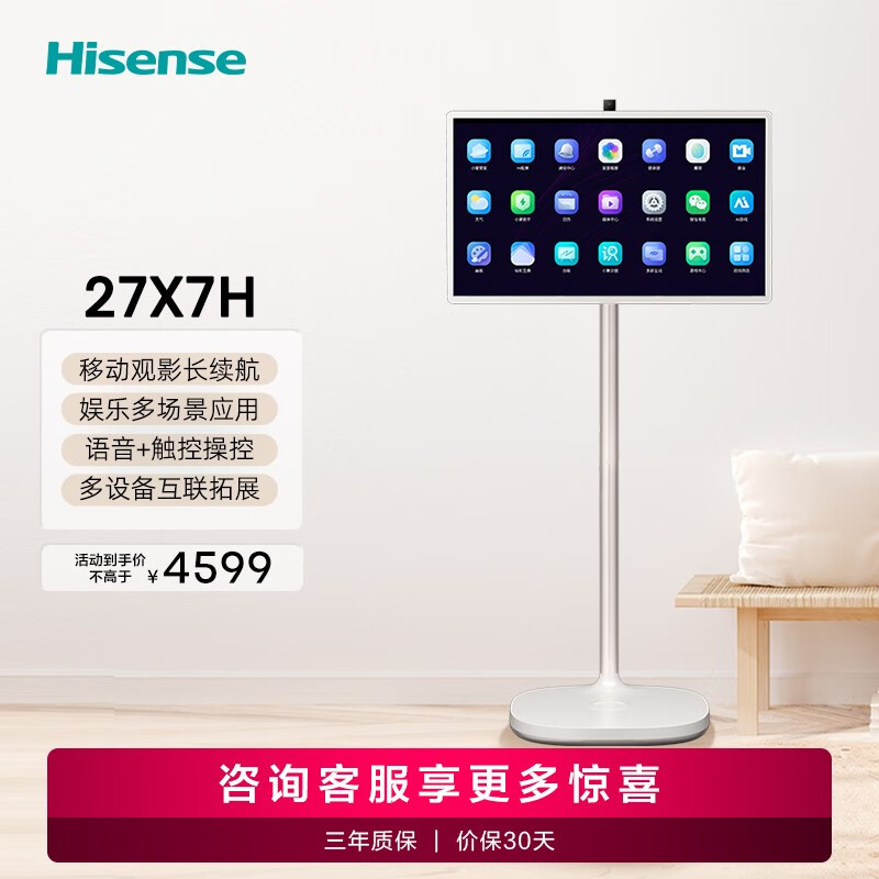 海信27X7H 移动智慧屏 闺蜜机随心智能屏 可移动电视 触控触摸直播网课平板添易添乐价格:4599.00元!