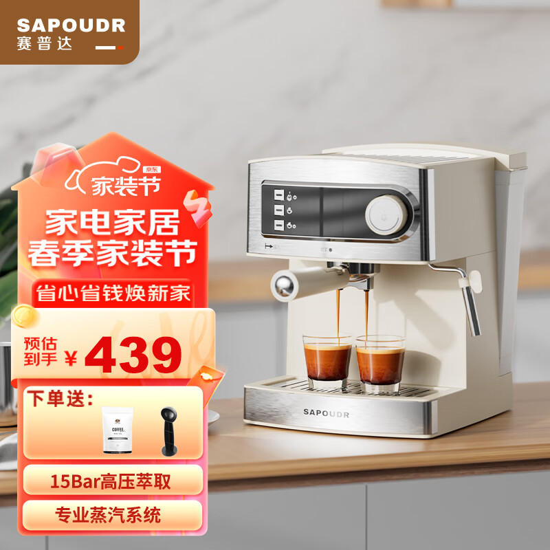 赛普达EC10全半自动浓缩小型家用蒸汽奶泡意式咖啡机价格:439.00元!