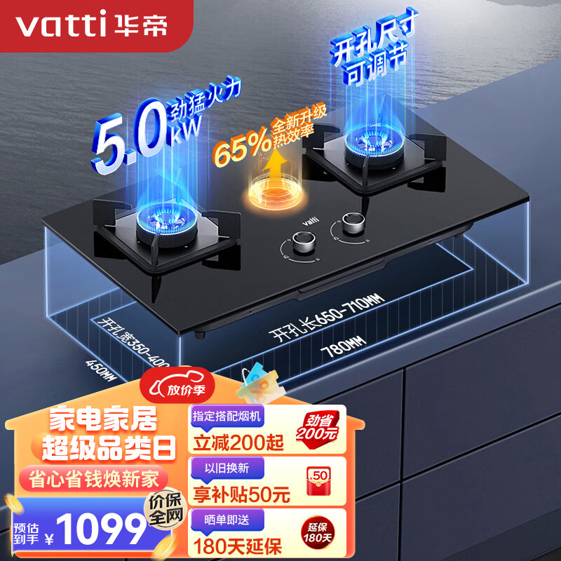 华帝(VATTI)家用燃气灶天然气灶双灶嵌入式 5.0kW大火力猛火灶台嵌两用易清洁灶具灶台换灶不改孔JZT-i10071B价格:1063.00元!