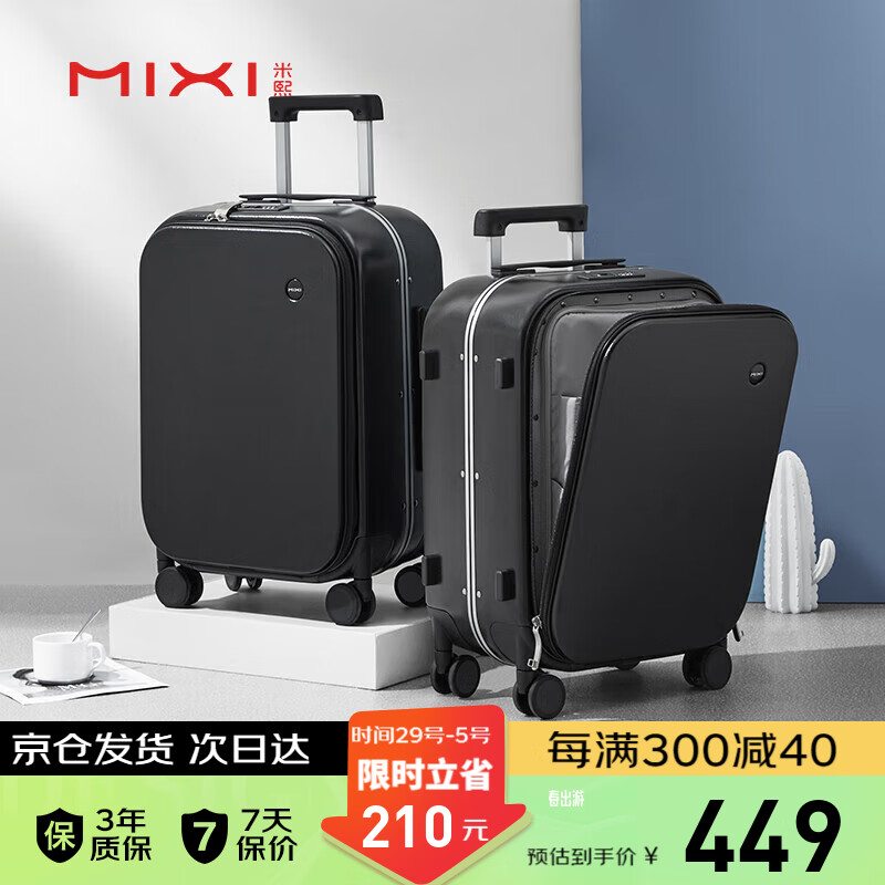 米熙铝框拉杆箱子行李箱前开盖旅行箱包密码箱登机箱男20英寸黑色60价格:659.00元!