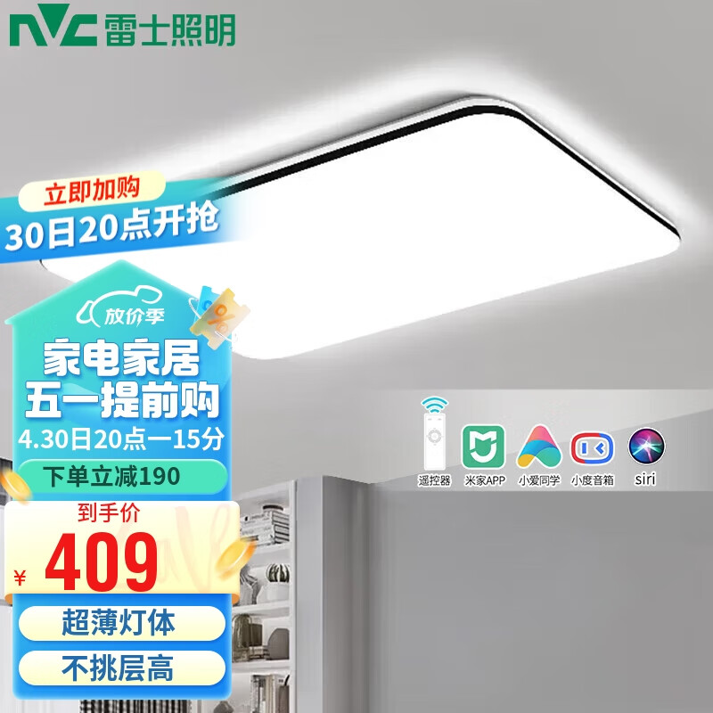 雷士照明(NVC)LED吸顶灯客厅大灯 现代简约超薄灯饰灯具 米家智能调光 120W价格:599.00元!
