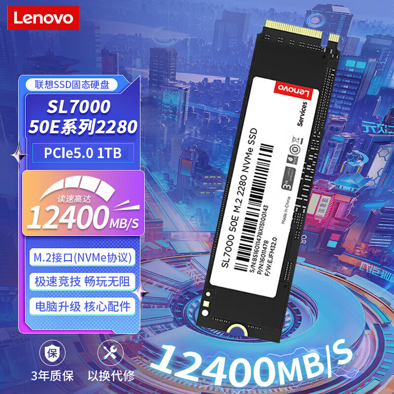 联想(Lenovo)1TB SSD固态硬盘 M.2接口(NVMe协议)四通道PCIe5.0 读速12400MB/s SL7000 50E系列价格:1399.00元!