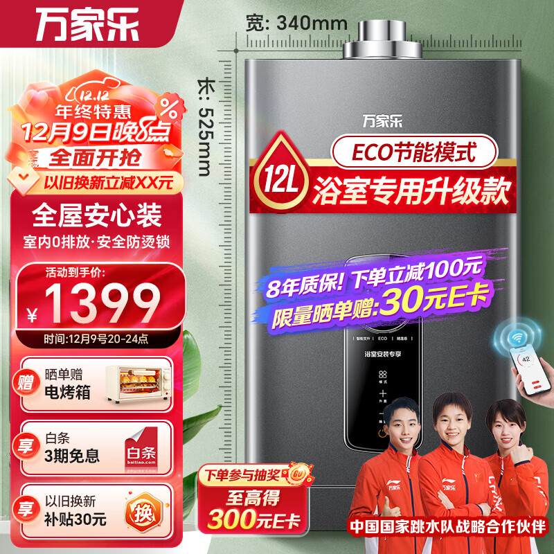 万家乐JSG24-12RH2平衡式燃气热水器即热智能恒温可装浴室 ECO节能 WIFI智控 JSG24-12RH2 液化气价格:1499.00元!
