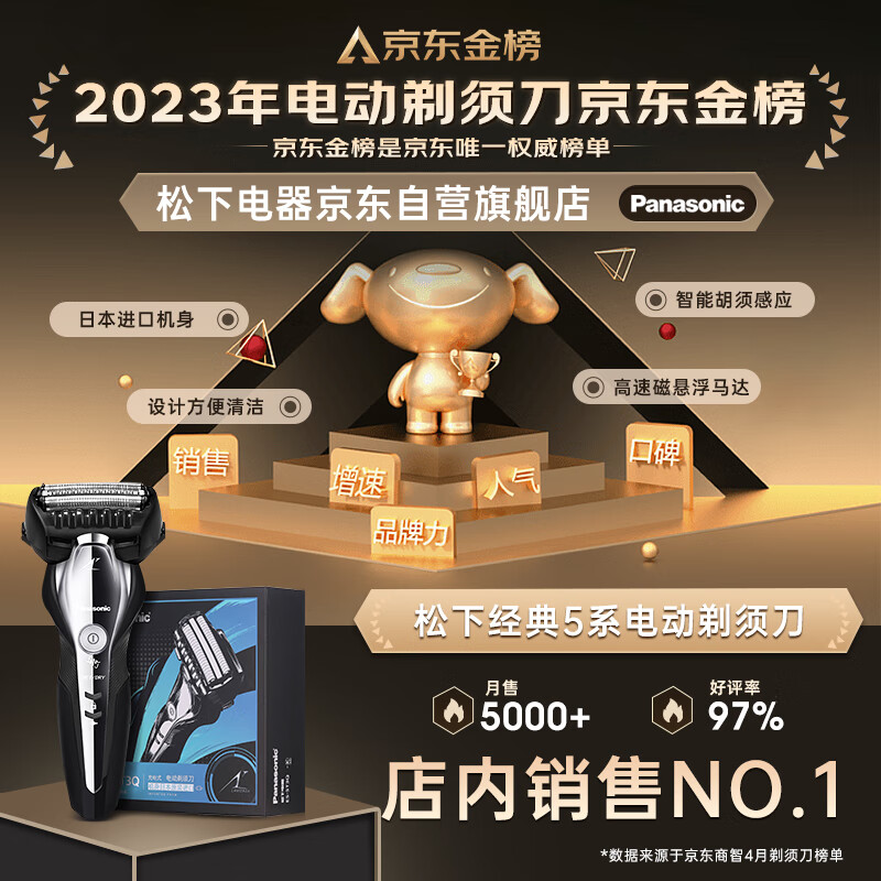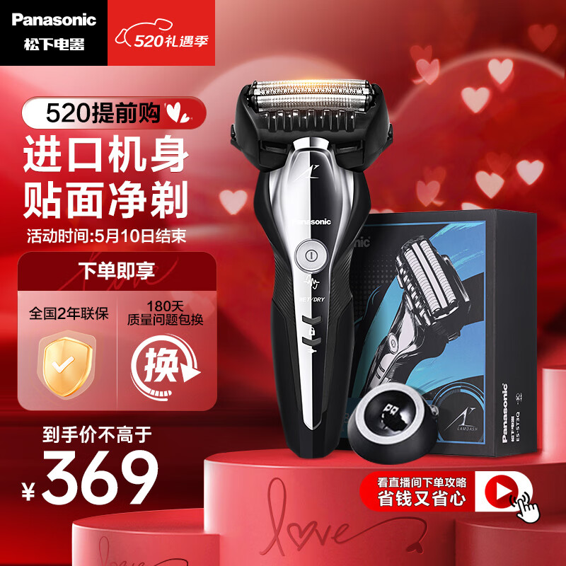 松下(Panasonic)经典5系剃须刀刮胡刀电动往复式磁悬浮马达进口三刀头生日礼物男士情人节送男友送父亲ST3Q黑价格:369.00元!