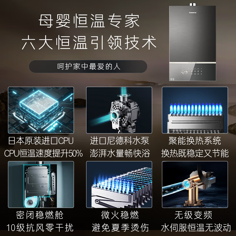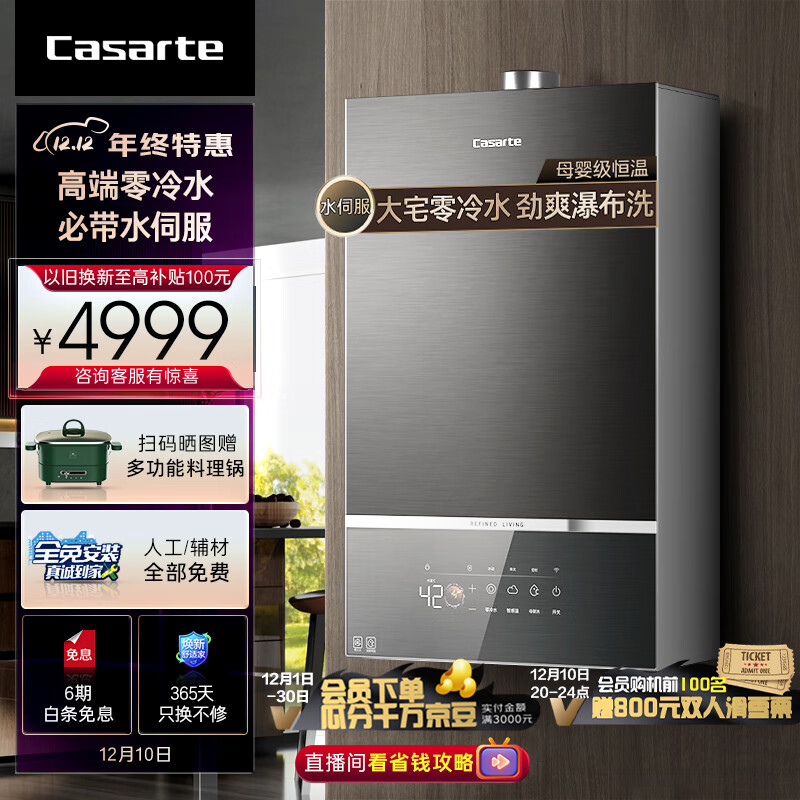 卡萨帝(Casarte)16升家用燃气热水器天然气母婴级恒温三管零冷水静音水伺服增压下置风机 JSQ31-16CWR3FRXCU1价格:4999.00元!