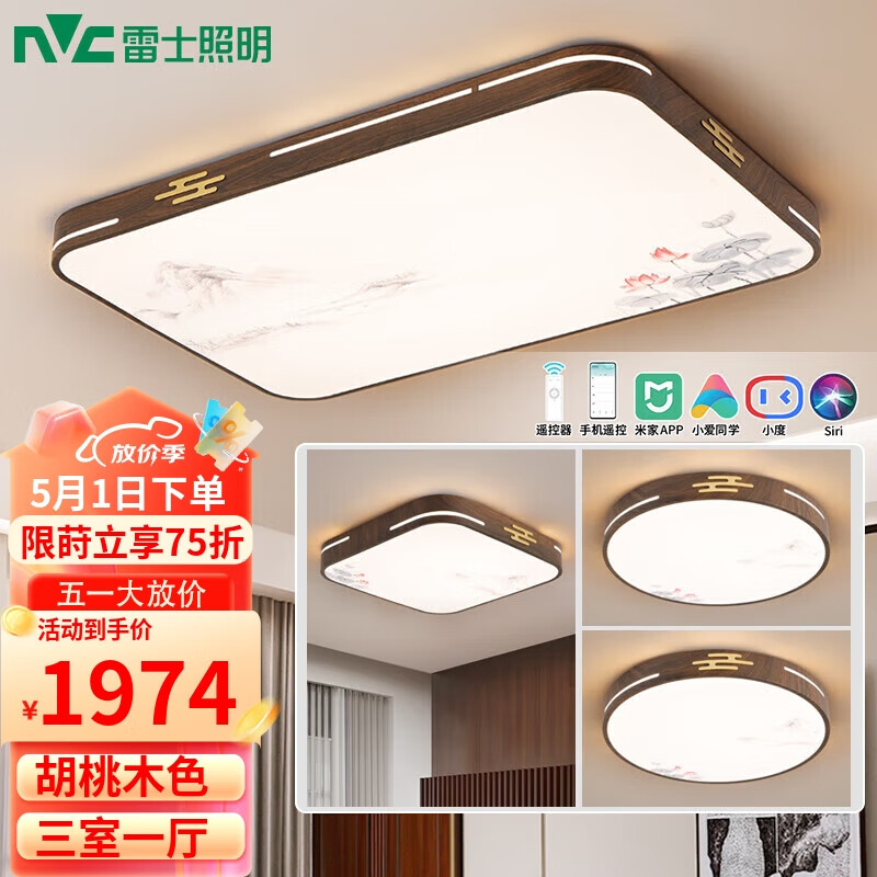雷士照明(NVC)LED吸顶灯客厅餐厅卧室灯铁艺复古灯具新中式智能典雅大气灯饰三室一厅套餐WHXD108W/F-04价格:2632.00元!