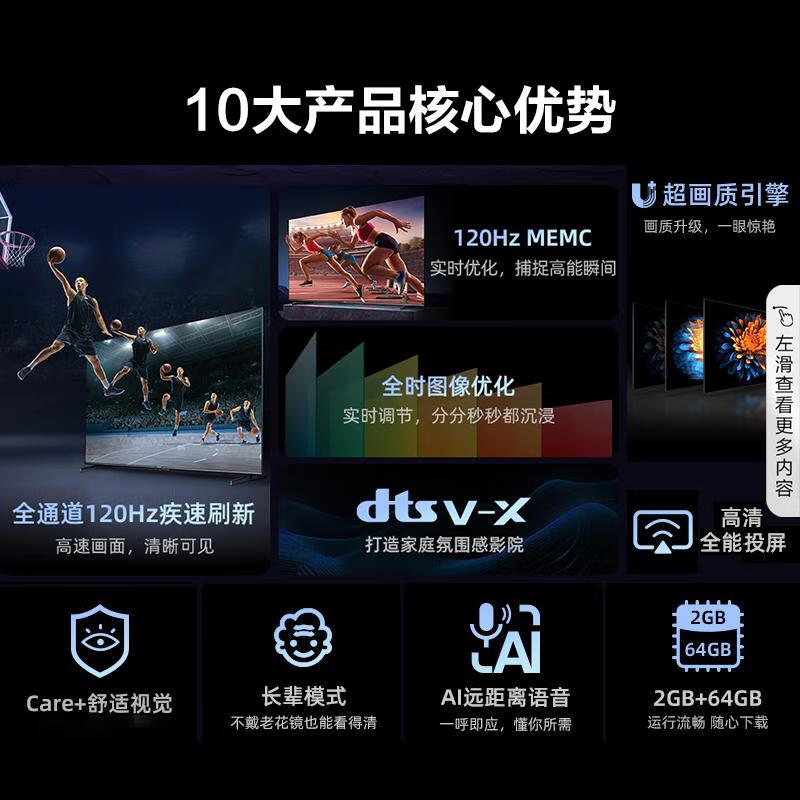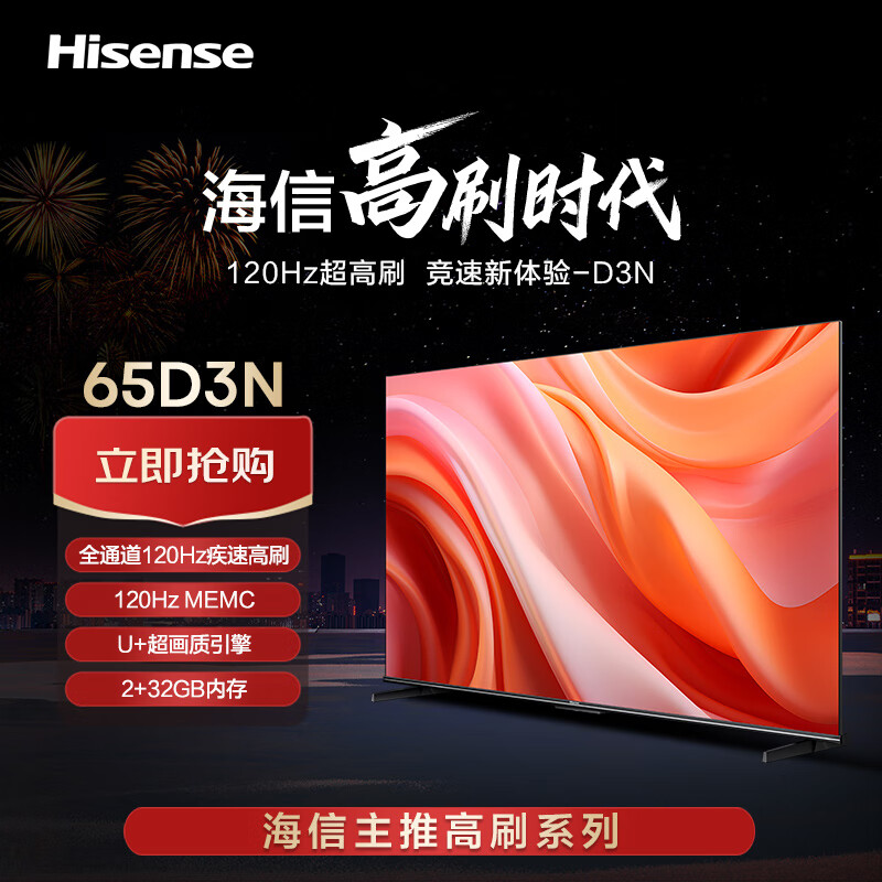 海信电视 65D3N 65英寸120Hz疾速高刷 MEMC运动防抖 2+32GB 语音智控 U+画质引擎 AI智能内容感知价格:5499.00元!
