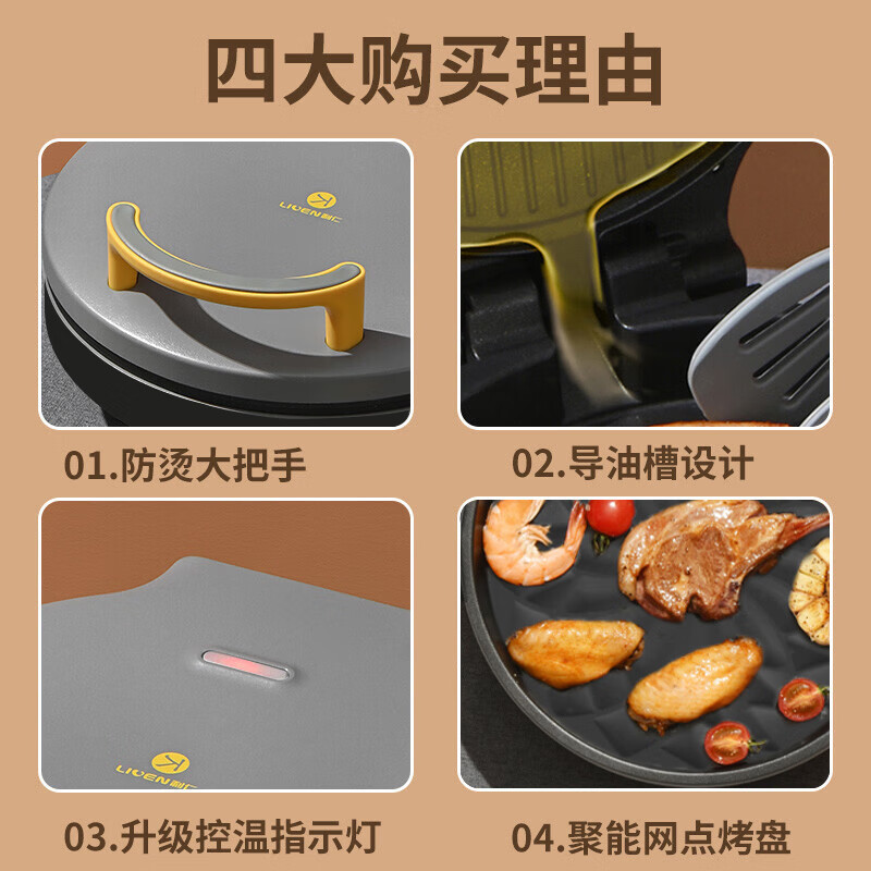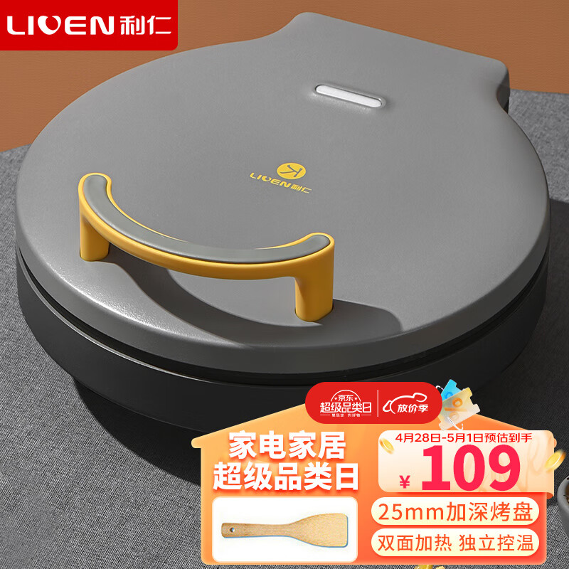 利仁(Liven)电饼铛家用双面加热电饼档加深烤盘 煎饼锅烙饼锅大号三明治早餐机电饼锅小型双面煎烤LR-J2603价格:109.00元!
