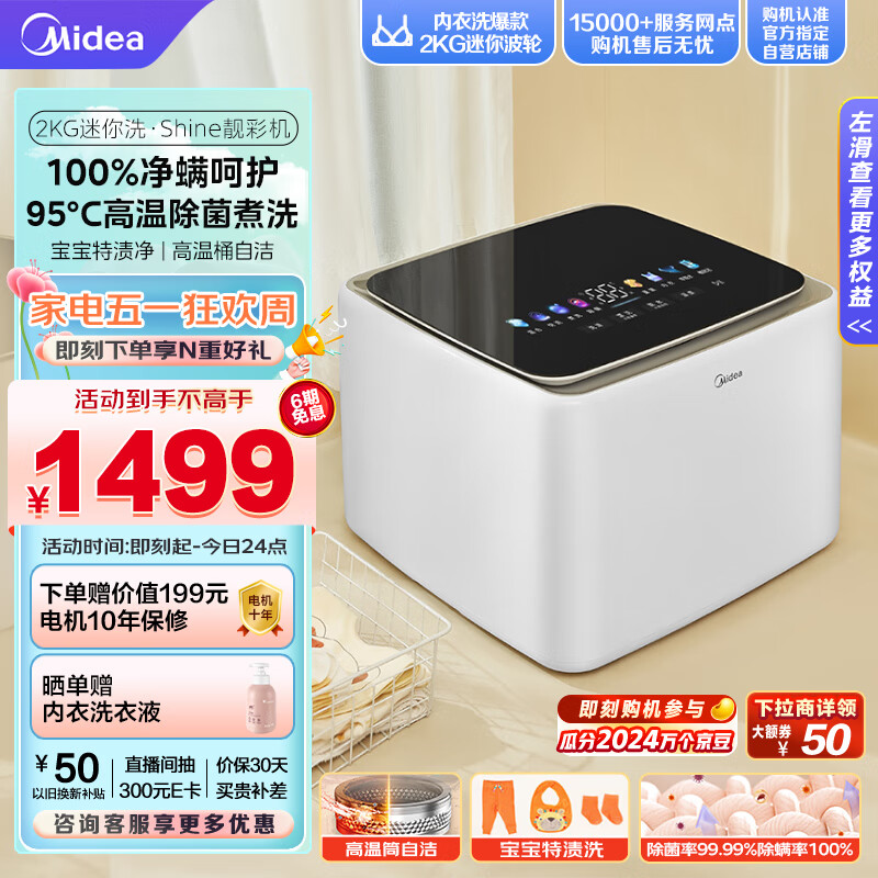 美的(Midea)2KG迷你洗衣机全自动 美的焕净内衣洗衣机小型 迷你洗衣机 婴儿洗衣机 95℃除菌净螨 MNB20-01W价格:1499.00元!