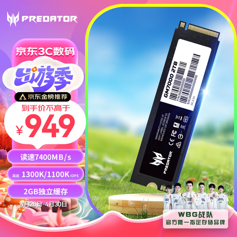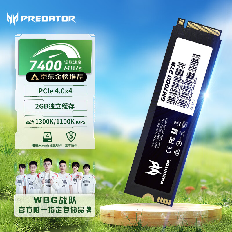 宏碁掠夺者(PREDATOR)2TB SSD固态硬盘 M.2接口(NVMe协议) GM7000系列|NVMe PCIe 4.0读速7400MB/s AI电脑存储配件价格:949.00元!