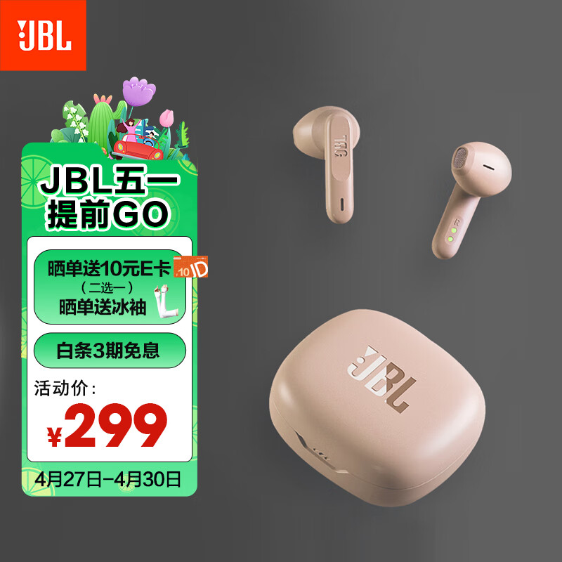 JBL WAVE FLEX 真无线蓝牙耳机 半入耳式音乐耳机 通话降噪运动防汗苹果安卓小米带麦游戏耳机 香槟金价格:349.00元!