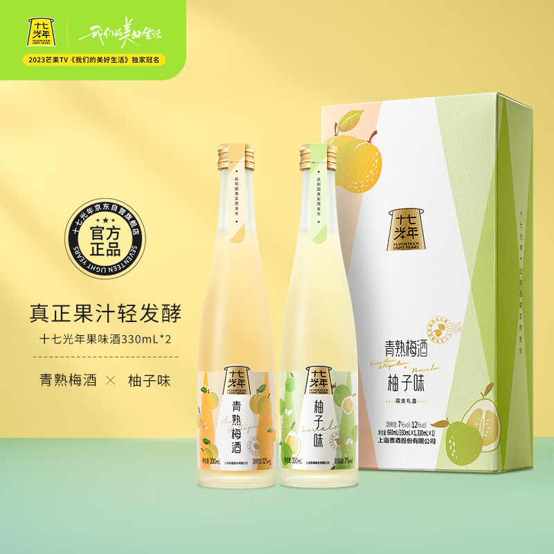 十七光年 果味酒 青梅+柚子口味 7-12度330ml*2瓶礼盒 低度微醺 送礼礼物价格:99.00元!