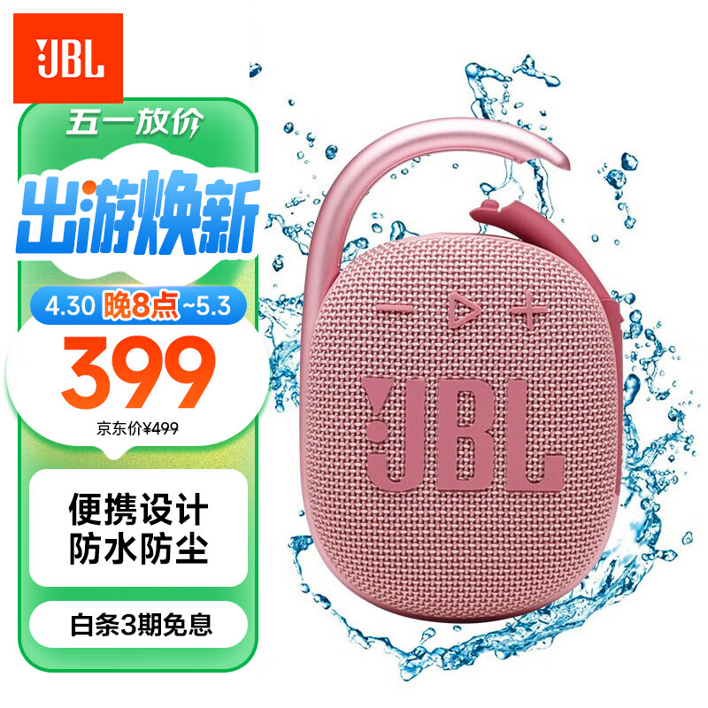 JBL CLIP4 无线音乐盒四代 蓝牙便携音箱 低音炮 户外迷你音箱 防尘防水 jbl 闺蜜礼物 粉色价格:399.00元!