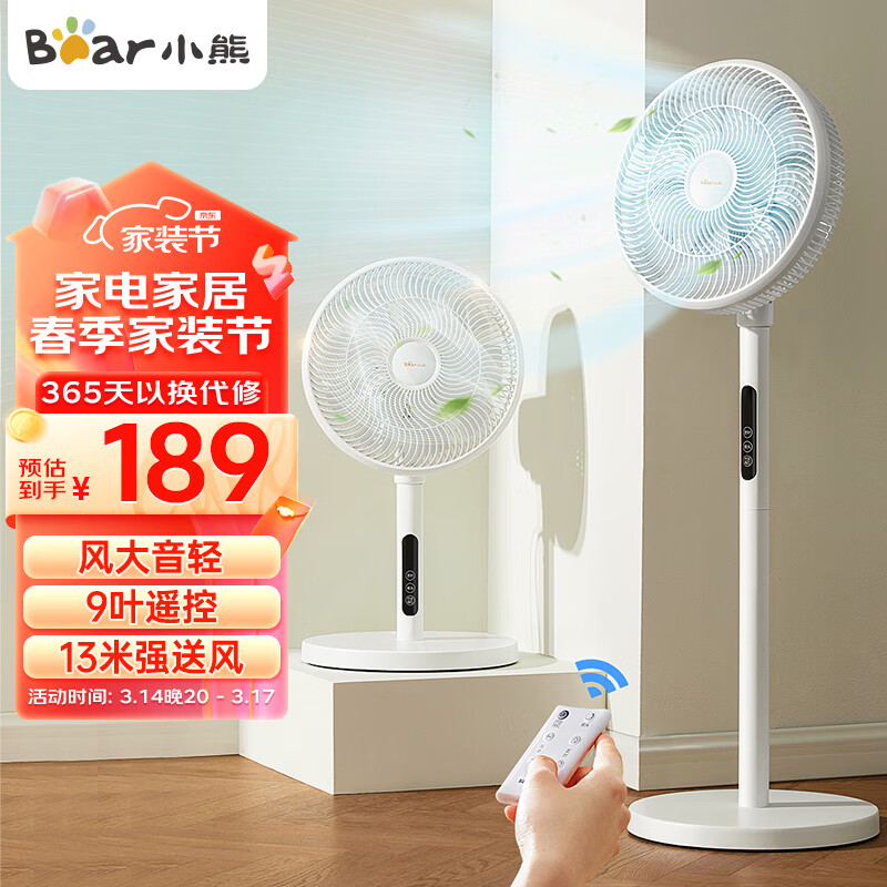 小熊(Bear)电风扇落地扇台扇空调扇立式风扇遥控风扇家用风扇大风力办公室风扇宿舍DFS-D47F2价格:189.00元!