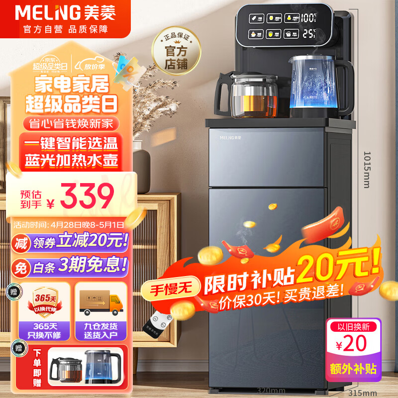 美菱(MeiLing)茶吧机 家用饮水机多功能智能遥控双出水口可下置水桶立式 轻奢大屏触控一键选温MY-C553价格:359.00元!