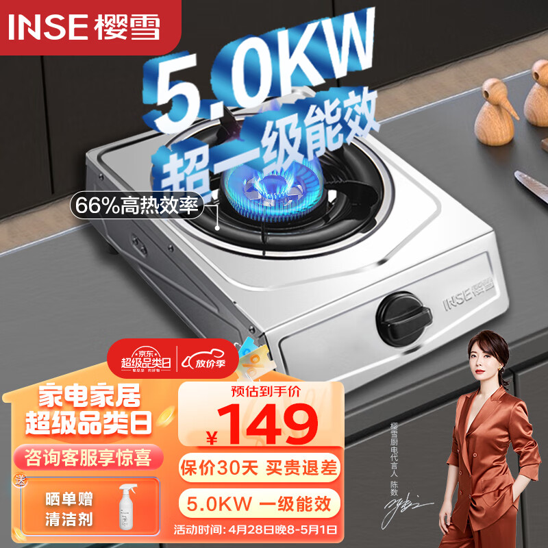 樱雪(INSE)燃气灶单灶 66%热效率一级能效 台式煤气灶单灶 家用不锈钢5.0KW猛火单眼灶具 2331液化气价格:148.00元!