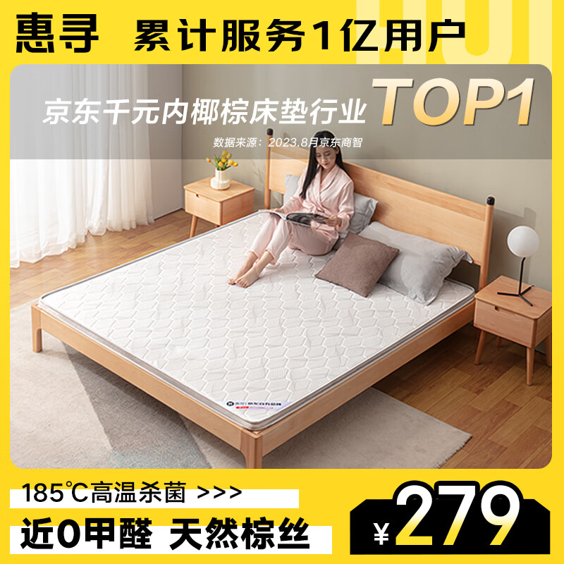 惠寻 京东自有品牌 椰棕床垫硬棕垫薄床垫偏硬主卧床 1.8米*2米5cm厚价格:279.00元!