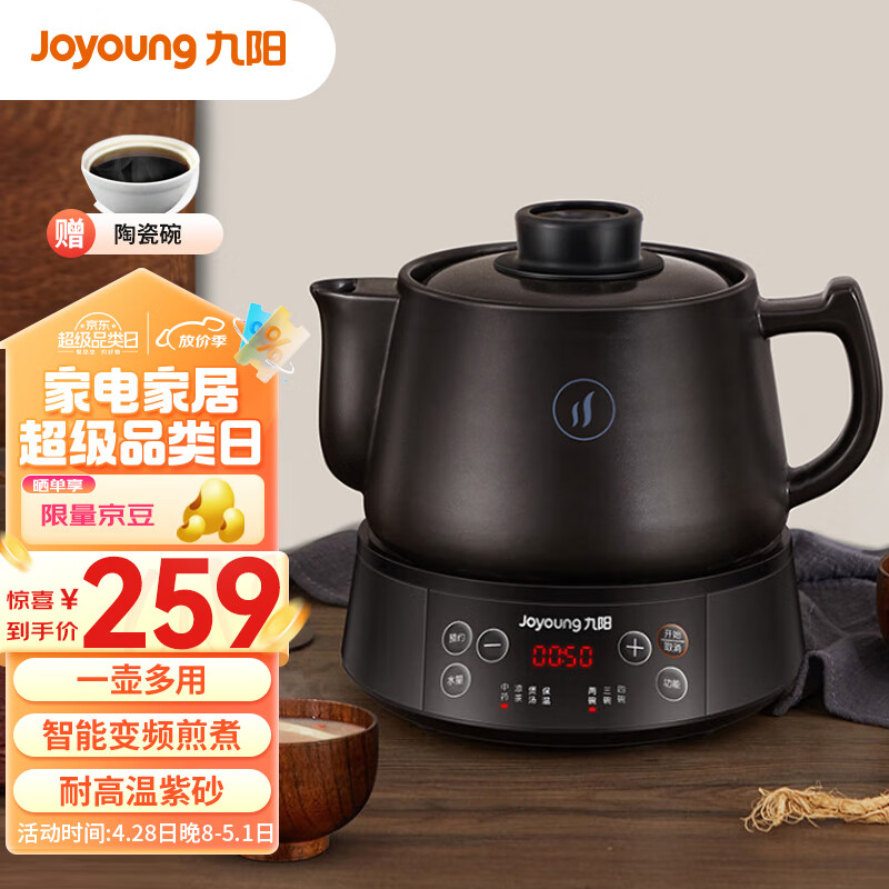 九阳(Joyoung)煎药壶中药壶熬药锅 养生壶 5L大容量 液体加热器 智能药膳煲家用 DGD5003BQ价格:259.00元!