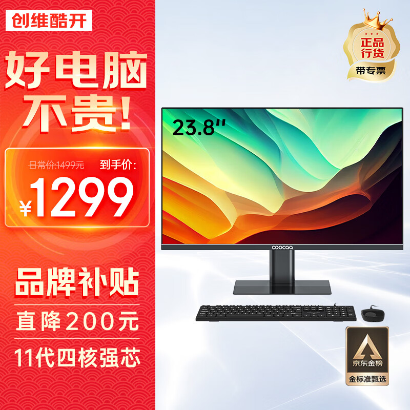酷开 创维电脑 23.8英寸办公商用家用娱乐一体机台式电脑(11代N5095 8G 256G SSD 双频WiFi 蓝牙)价格:1399.00元!