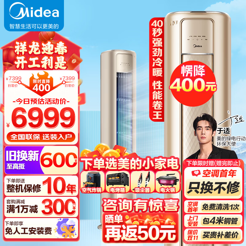 美的(Midea) 风尊 3匹 新一级变频冷暖 大风口自清洁智能家用客厅圆柱立式空调柜机 KFR-72LW/N8MZB1 多仓直发价格:6899.00元!
