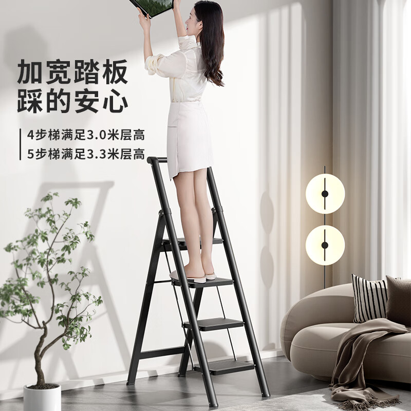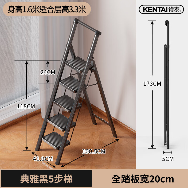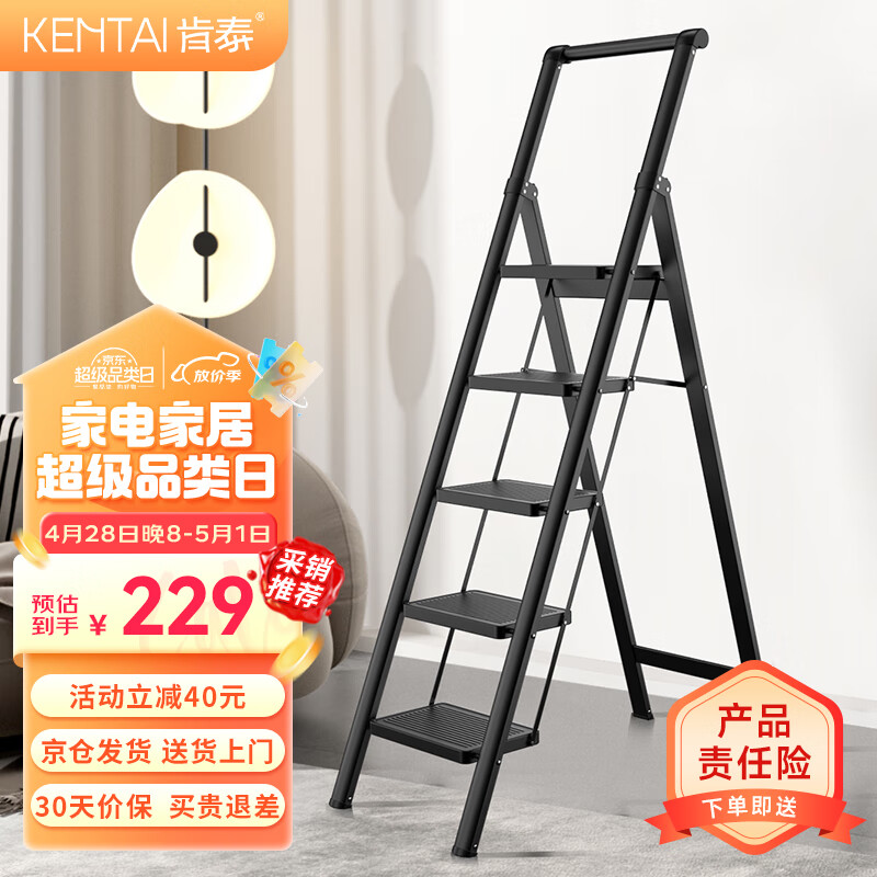 肯泰梯子家用人字梯折叠伸缩楼梯加厚碳钢加宽踏板工程铁梯F4-H5价格:349.00元!