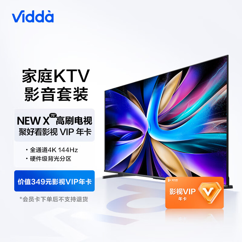 Vidda NEW X75 海信 75英寸 游戏电视 144Hz高刷 HDMI2.1金属屏 4+64G+电视影视VIP会员年卡12个月价格:4509.00元!