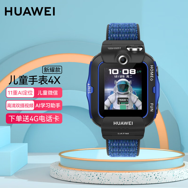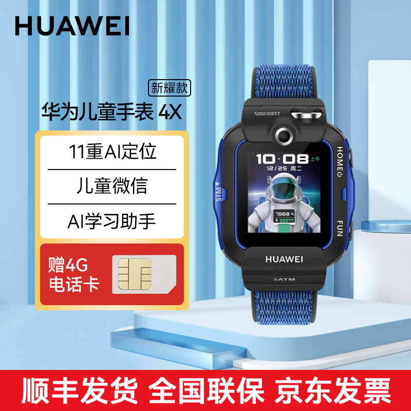 华为(HUAWEI)儿童手表 4X 新耀款 双摄视频通话 儿童微信 快充长续航 NFC交通门禁 4G通(星云蓝)价格:856.00元!