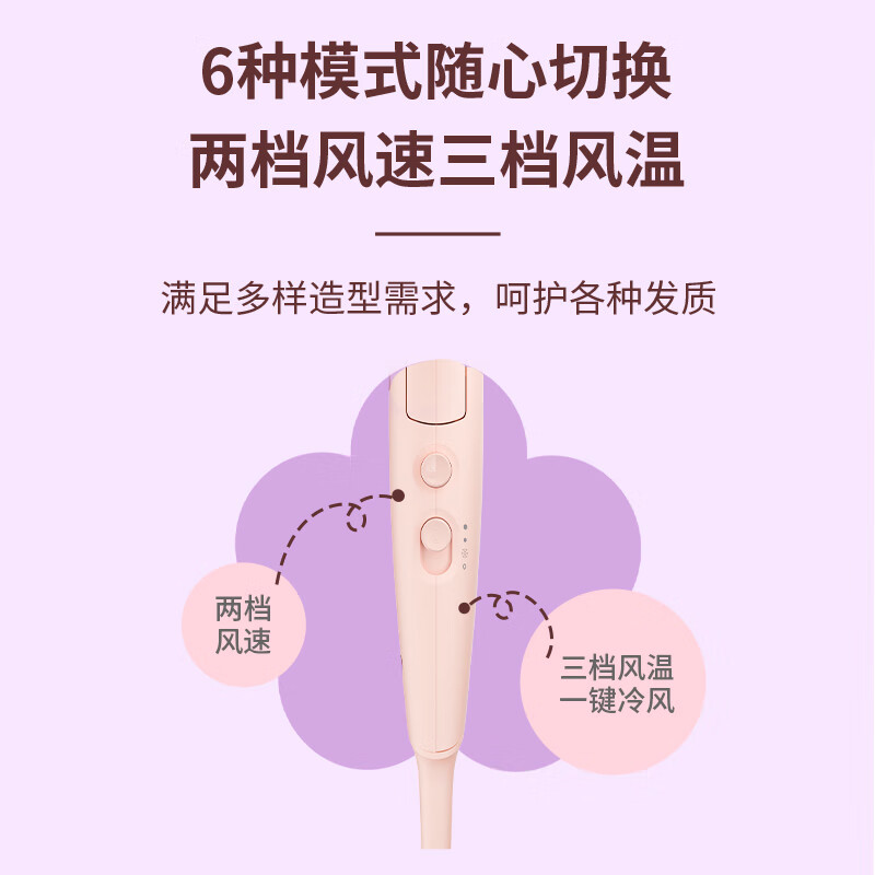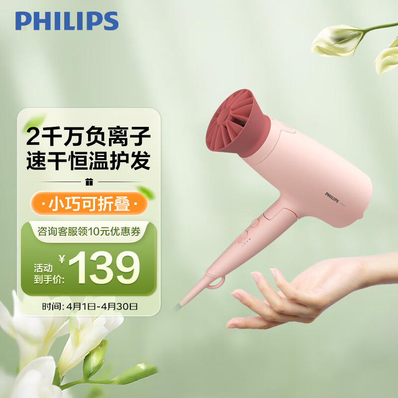 飞利浦(PHILIPS)电吹风机 3系小花筒 大功率速干负离子恒温护发 小花筒 樱花粉 可折叠家用 学生价格:139.00元!